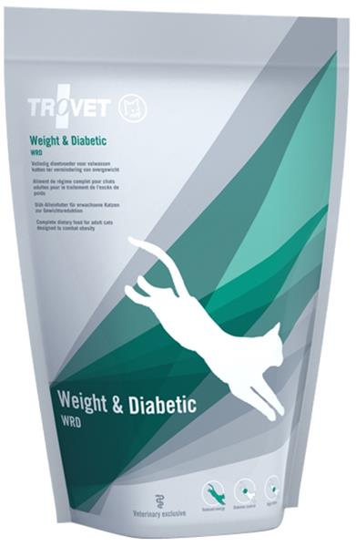 Trovet WRD je kompletné, diétne krmivo pre mačky určené na zníženie nadváhy. Zloženie: hydinové mäso, kukurica, ryža, kukuričný lepok, hydrolyzovaná hydinová pečeň, rybie mäso, celulóza, vajcia, pivovarské kvasnice, rybí olej, chlorid sodný. Analytické zložky: hrubý proteín 36,0 %, hrubé oleje a tuky 8,5 %, hrubý popol 7,0 %, hrubá vláknina 4,5 %, vlhkosť 8,0 %, uhľohydráty 36 %, vápnik (Ca) 1,20 %, fosfor (P) 1,10 %, draslík (K) 0,60 %, sodík (Na) 0,45 %, horčík (Mg) 0,08 %. Doplnkové látky (v kg): Nutričné doplnkové látky: Vitamíny: vitamín A 15000 MJ/kg, vitamín D3 1000 MJ/kg, vitamín 250 MJ/kg, L-karnitín 150 mg/kg, taurín 1800 mg/kg. Stopové prvky: síran zinočnatý monohydrát (Zn) 85 mg/kg, síran železnatý monohydrát (Fe) 75 mg/kg, oxid mangánatý (Mn) 15 mg/kg, pentahydrát síranu meďnatého (Cu) 10 mg/kg, jodičnan vápenatý bezvodý I) 2 mg/kg, seleničitan sodný (Se) 0,15 mg/kg. Obsahuje antioxidanty. Dávkovanie: