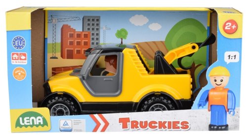 Truckies odťahový automobil z kvalitného plastu a veľmi pevnou stavbou. Plne mechanicky funkčný. Obsahuje odklopiteľnú kabínu s aktívnym panáčikom. Vyrobené v SR