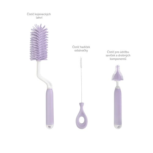 TrueLife Nutrio Cleaning Set – Hygienická čistota dojčenských fliaš a príslušenstva Každý rodič chce ochrániť svoje bábätko pred rôznymi nástrahami ao jeho zdravie sa postaráte aj dôkladnou hygienou. V čistote je potrebné udržiavať nielen okolité prostredie, ale aj najrôznejšie fľaštičky, cumlíky a ďalšie príslušenstvo. Práve na tieto účely slúži sada TrueLife Nutrio Cleaning Set. Navrhnutá bola s ohľadom na maximálne pohodlie a bezpečnosť, preto je vyrobená iba z najkvalitnejších materiálov bez obsahu BPA, ftalátov či iných škodlivín. 3 typy kief dokonale vyčistia rôzne typy príslušenstva a fľaštičiek z akéhokoľvek materiálu. Protišmyková úprava otočnej rukoväte zaisťuje pevné a bezpečné uchopenie aj mokrou rukou a minimálnu námahu. Táto sada v krásnom fialovom prevedení obsahuje všetko, čo potrebujete na údržbu všetkého príslušenstva, fľaštičiek a cumlíkov pre vaše dieťatko.