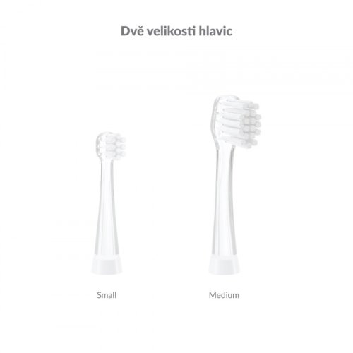 3 hlavice v balení Súčasťou balenia sú 2 hlavice Small a 1 hlavica Medium, kefka tak môže používať viac detí. Iné typy hlavíc je možné dokúpiť.
