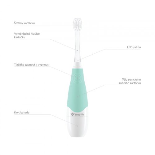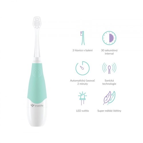 Šetrná sonická technológia SonicTrue® Sonická kefka pracuje na báze jemných vibrácií a je tak šetrnejšia, než klasická alebo rotačná kefka. Všetko je samozrejme špeciálne prispôsobené pre detské zúbky.