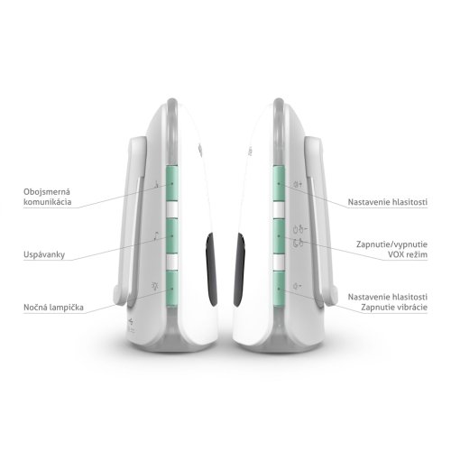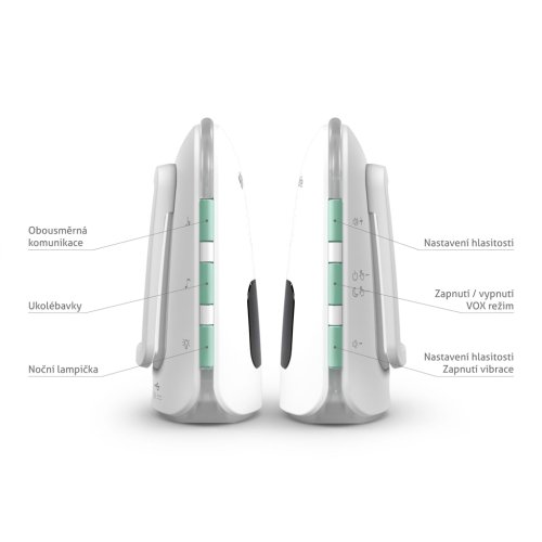 Bezpečie za všetkých okolností Rodičovská jednotka je vybavená LCD displejom pre rýchly prehľad a detektorom indikujúcim stratu signálu, slabú batériu alebo nízku či vysokú teplotu v miestnosti. Digitálny prenos signálu je zabezpečený, nemusíte si teda robiť starosti, že by ho niekto zachytil. Rodičovskú jednotku si pomocou praktickej spony pripevníte napríklad k opasku. Pokiaľ by sa ale stalo, že ju niekde odložíte, pomocou detskej jednotky a zvukového lokátora rodičovskú jednotku opäť objavíte. Spoločne s detskou jednotkou je možné spárovať až dve rodičovské jednotky.