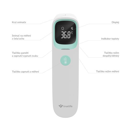 Z ucha, čela a so špeciálnym módom pre deti TrueLife Care Q9 ponúka tri režimy merania teploty. Okrem klasického merania telesnej teploty dokáže zmerať aj predmety, povrchy alebo tekutiny. Ľahko tak môžete skontrolovať napríklad dojčenskú stravu alebo čaj. Pri meraní telesnej teploty osôb máte možnosť voľby medzi meraním z teploty z ucha alebo čela. Teplomer disponuje aj detským režimom, ktorý je prispôsobený pre osoby mladšie ako 12 rokov.