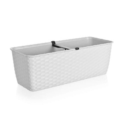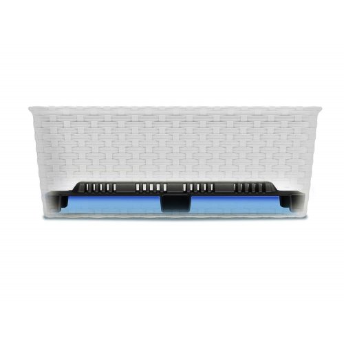 Plastový kvetináč so samozavlažovacím systémom. Dizajn verne imituje rattánový výplet. Šírka: 40 cm, výška: 13 cm.