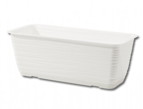 Plastový kvetináč s jemnými vlnkami po celom obvode. Súčasťou je podmiska. Farba: biela. Šírka: 50 cm, výška: 15 cm.