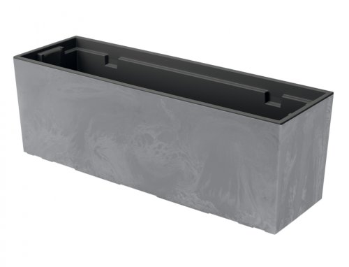 Matný plastový kvetináč s dizajnom pripomínajúci betón, súčasťou je vnútorná vložka pre rastliny vhodnými do interiéru. Farba: tmavo šedá. Šírka: 40 cm, hĺbka: 19 cm, výška: 20 cm.