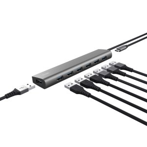 TRUST Halyx 7 Port USB 3.2 Gen1 Hub Štýlový hliníkový rozbočovač USB pridáva do počítača 7 ďalších portov USB-A s rýchlosťou 5 Gb/s