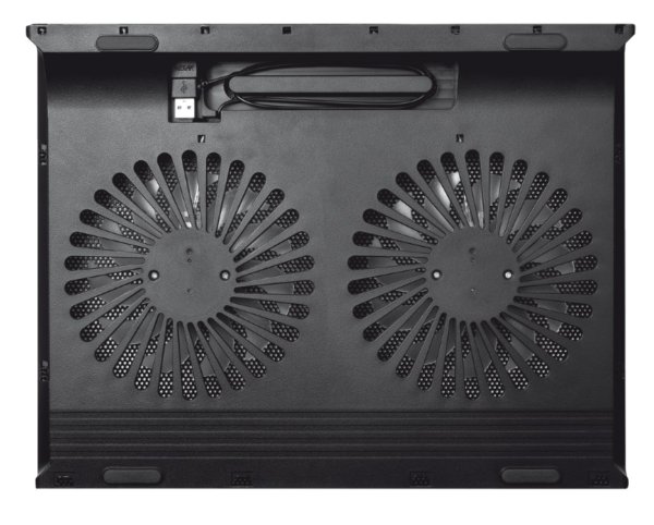 Typ podložky kancelárska Podsvietenie modré Pripojenie USB-A Napájanie cez USB Bez vypínača Vhodné pre notebooky do veľkosti 17" Počet ventilátorov 2 Materiál plast