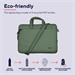 Kľúčové vlastnosti *Praktická prenosná taška s veľkou priehradkou pre notebooky až 16 palcov (26 x 37 cm) *Udržateľná tkanina vyrobená z 11 recyklovaných PET fliaš *Polstrovaná hlavná priehradka s podšívkou z jemného mikrovlákna bezpečne udrží váš notebook *Top-loader design sa k vášmu notebooku a dokumentom *Predné vrecko na zips pre drobné príslušenstvo, ako je telefón, nabíjačka a tablet *Možno nosiť za rukoväť alebo odnímateľný, nastaviteľný ramenný popruh