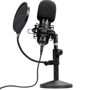 Vysoko kvalitný mikrofón na streamovanie hier s robustným kovovým stolným stojanom