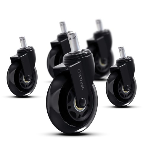 Trust GXT702 gélové kolieska gélové kolieska stoličky pre hladký a tichý pohyb Vylepšite svoju stoličku týmto balením 5 elegantných a štýlových 75mm gélových koliesok. Vďaka univerzálnemu 11mm uchyteniu, hladkému a tichému chodu, ktoré nepoškriabe ani nezanechá stopy na podlahe, a nosnosti až 300 kg, sú dokonalým prémiovým vylepšením pre vašu kanceláriu alebo hernú miestnosť.