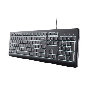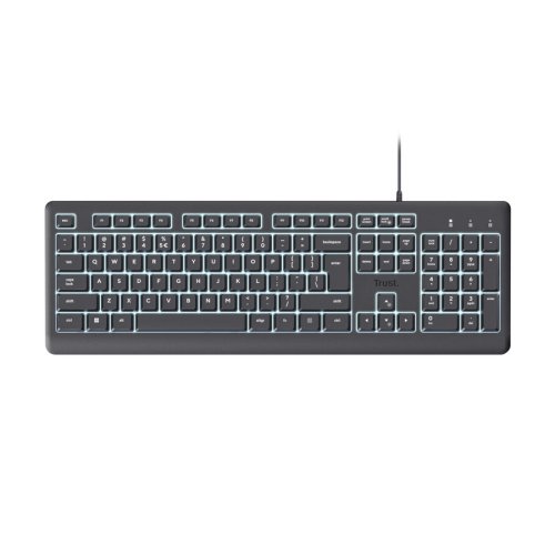 Pracujte nepretržite s klávesnicou Trust Primo Illuminated. Táto tichá klávesnica je vybavená podsvietenými klávesmi LED pre ľahké čítanie bez ohľadu na dennú dobu. Umožňuje úpravu jasu pomocou klávesov Fn podľa svojho prostredia. Klávesnica je vyrobená zo 70% recyklovaných plastov pre vyššiu produktivitu. Konštrukcia Primo Illuminated je odolná proti poliatiu, chráni pred nehodami spôsobenými rozliatím tekutín. Má nastaviteľné nožičky pre nastavené ideálneho uhla na písanie. Žiadne starosti, maximálna produktivita. Jednoducho pripojte klávesnicu Trust pomocou 180cm kábla USB-C alebo dodaného prevodníka USB-CA a ste pripravení. Žiadne ovládače, žiadne oneskorenie, žiadne bolesti hlavy. Iba okamžitá kompatibilita s vašim obľúbeným zariadením.