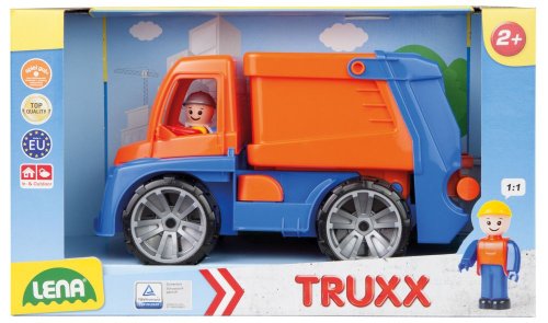 Truxx auto smetiarka z kvalitného plastu a veľmi pevnou stavbou. Plne mechanicky funkčný. Obsahuje poistku proti nežiaducemu vyklopeniu, odklopiteľnú kabínu s aktívnym panáčikom. Balené v okrasnom kartóne. Vhodné pre chlapcov od 2 rokov.