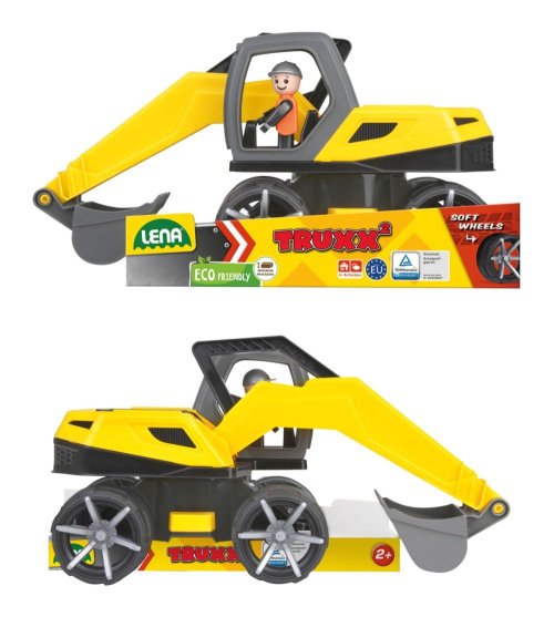 Truxx 2 bager z kvalitného plastu a veľmi pevnou stavbou. Plne mechanicky funkčný. Obsahuje poistku proti nežiaducemu otáčaniu spodnej časti, odklopiteľnú kabínu s aktívnym panáčikom. Pogumované kolesá s tichým chodom.