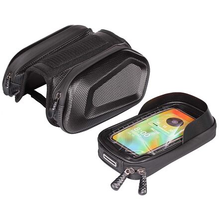 Taška na bicykel Merco Tube 2.0 je skvelý doplnok každého cyklistu, ktorý potrebuje na svoj výlet to najnutnejšie. Táto taška 2v1 sa upevňuje na rám bicykla jednoducho a rýchlo vďaka suchým zipsom. Vodeodolná taška ponúka dve postranné vrecká, ktoré majú tvrdú a pevnú škrupinu a vy sa tak nemusíte báť o svoje drobnosti ako peňaženka, okuliare, kľúče a pod. Výhodou tejto tašky je aj horné puzdro na mobil, ktoré v sekunde pripevníte či odoberiete vďaka suchému zipsu. Mobil ľahko ovládate vďaka transparentnej fólii a vďaka výstupu na slúchadlá môžete počúvať aj svoje obľúbené pesničky. Parametre: - materiál: PU koža + TPU + PE - rozmery: 19 x 16 x 16 cm (D x Š x V) - puzdro na mobil: 6,5 in / 16 x 8,5 cm - váha: cca 300 g - transparentné púzdro na mobil s vývodom na slúchadlá - 2 bočné vrecká na drobnosti: 18 x 10 x 3 cm - jednoduchá montáž bez náradia