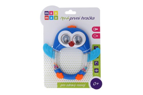 Tučniak hrkálku. Dĺžka 15 cm. Vydáva svetelné a zvukové efekty. Napájané batériami, ktoré nie je možné vybrať. 3xAG13 batérie súčasťou.
