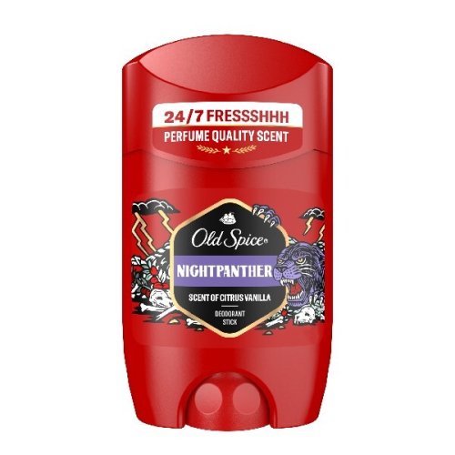 Old Spice Nightpanther obsahuje bohatú, gurmánsku vôňu s horkou čokoládou a smotanovo vanilkovým jadrom uzavretým s korenistými citrusovými a bylinnými tónmi. Dezodorant neobsahuje hliníkové soli, bojuje proti telesnému zápachu a nevytvára škvrny.