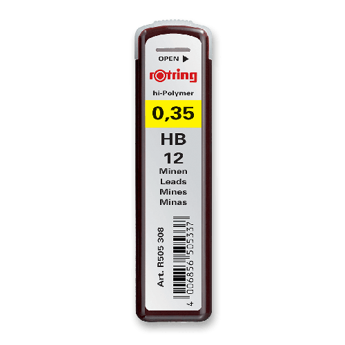 Tuhy Rotring s vysokým obsahom polymérov sú vďaka špeciálnemu zloženiu extra pevné. Krabička obsahuje 12 ks tuh. Rôzna šírka a tvrdosť tuhy.