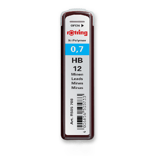 Tuhy Rotring s vysokým obsahom polymérov sú vďaka špeciálnemu zloženiu extra pevné. Krabička obsahuje 12 ks tuh. Rôzna šírka a tvrdosť tuhy.
