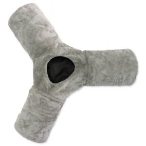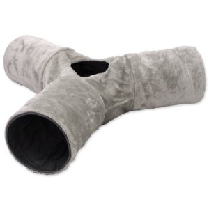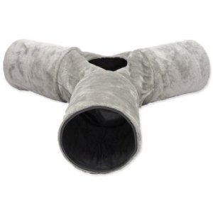 Tunel pre mačky sa v tvare písmena „Y“ s otvorom uprostred pre zábavnú hru.