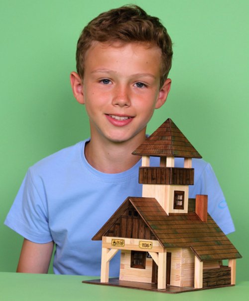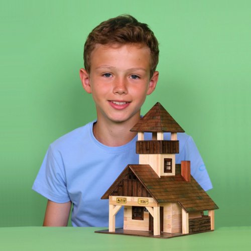 Drevená zlepovacia stavebnica, v ktorej je všetko potrebné na zostavenie vrátane návodu. Na zlepenie sa používa lepidlo na drevo a papier. Nie je súčasťou balenia.