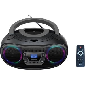 Boombox Denver TDB 212GR DAB+/FM tuner LCD displej LED osvetlenie okolo reproduktorov Bluetooth 5.0 CD prehrávač USB vstup - podpora MP3 AUX vstup 3,5 mm Výstup pre slúchadlá Diaľkové ovládanie Max. výkon: …
