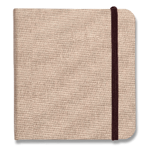 Album Clairefontaine Goldline Natural s rozmermi 15 x 15 cm má pevnú látkovú väzbu s pružnou páskou proti otvoreniu.