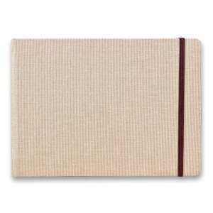 Album Clairefontaine Goldline Natural s rozmermi A5 má pevnú látkovú väzbu s pružnou páskou proti otvoreniu.
