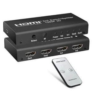 PremiumCord HDMI switch 2:2, 3D, 1080p s diaľkovým ovládačom 2 HDMI zariadenie zdieľa 2 HDMI výstupné zariadenia (obrazovky).