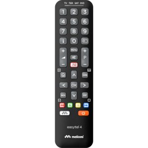 Diaľkový ovládač Meliconi EASYTEL 4 Univerzálny diaľkový ovládač pre 4 zariadenia (808060) 4 zariadenia (TV, DTT, SAT, ADSL TV, KÁBEL, DVD, VIDEO, HIFI & AUX) Predprogramované infračervené diaľkové ovládanie …