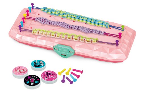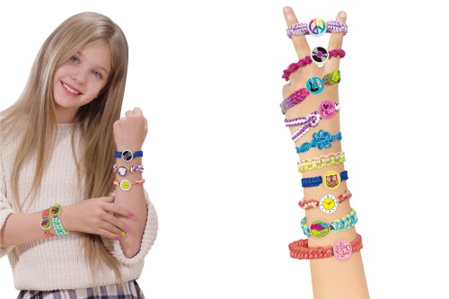 Tvorba náramkov set. Obsahuje krabičku na zaháknutie náramku pri pletení a na uloženie potrieb na tvorbu náramku, ozdoby, nálepky, návod, povrázky na tvorbu náramkov. Veľkosť krabičky 23cm. Zo sady je možné vyrobiť až 12 náramkov. Návod obsahuje 10 štýlov pletenia.
