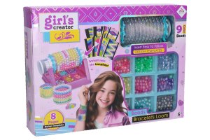 Tvorba náramkov s navliekačom set. Obsahuje navliekač na tvorbu náramkov, šablóny so vzormi, koráliky rôznej farby.