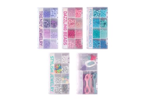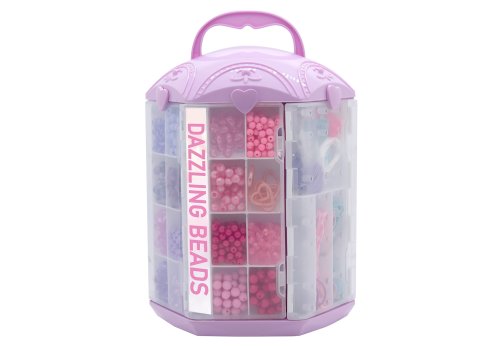 Tvorba náramkov skrinka. Veľkosť 27cm. Obsahuje 5 krabičiek s korálkami a povrázkami na tvorbu náramkov. Krabičky sa dajú umiestniť zvisle na skrinku pre lepšiu organizáciu korálikov. Skrinka má miesto na hotové náramky. madlo na prenášanie.