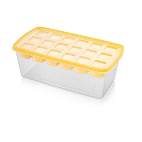 Kombinuje klasické silikónové tvorítko uzavreté viečkom s priestranným zásobníkom na uchovanie a podávanie ľadových kociek, zaručuje, že voda počas prenášania a prípravy ľadu v mrazničke z formičky nevyteká
