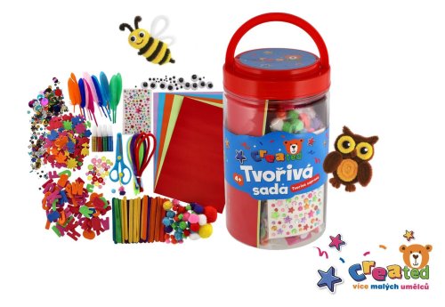 Rozvíjajte fantáziu a jemnú motoriku detí s hravou tvorivou sadou created. Farebná plastová dóza ukrýva viac ako 500 kreatívnych pomôcok – chlpaté drôtiky, očká, penové tvary a ďalšie doplnky, z ktorých si deti môžu vyrobiť vlastné zvieratká, dekorácie alebo originálne ozdoby. Vhodné pre deti od 4 rokov.