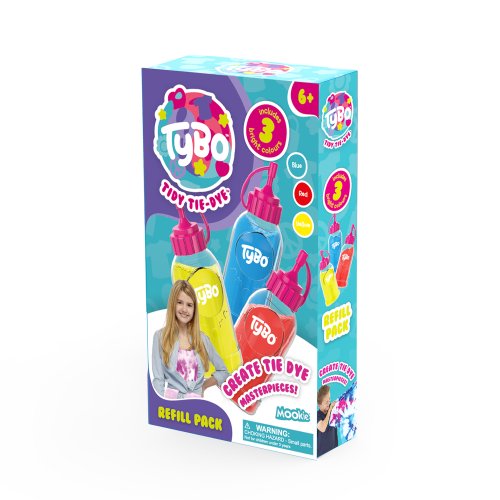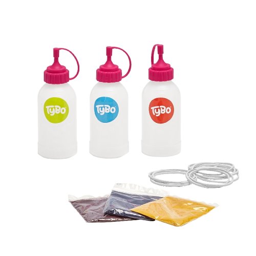 A čo je Tybo Batikovací dizajn štúdio? Je to sada. ktorá má všetko čo potrebujete na výrobu batikovaných tričiek alebo napríklad plátených tašiek. Toto štúdio obsahuje návody na rôzne druhy batikovania, elastické povrázky, vďaka ktorým sú výtvory zakaždým dokonalé a pestrofarebné prášky s fľaštičkami na farbenie.