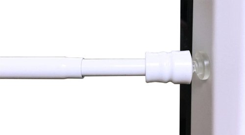 Praktická vitrážová tyč, teleskopická, ktorú je možné uchytiť do okenného rámu bez vŕtania a to za pomoci prísaviek.