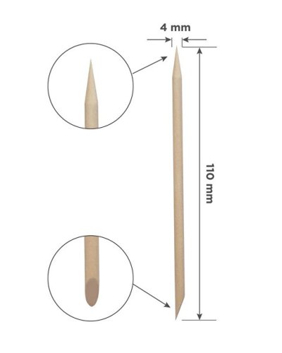 Profesionálna drevená tyčinka ideálna pre precíznu manikúru. Vďaka optimálnej veľkosti a tvaru zaisťuje pohodlné použitie a maximálnu presnosť pri úprave nechtov.