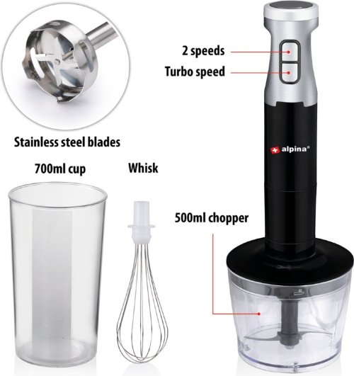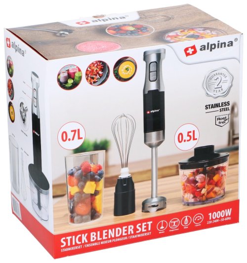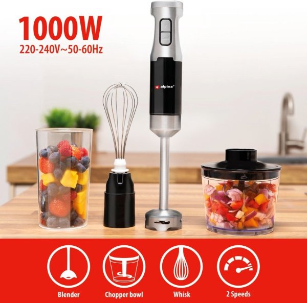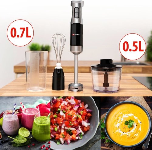 S tyčovým mixérom so sekáčikom Alpina bude varenie ľahké a zábavné. Tento všestranný tyčový mixér je vašim dokonalým spoločníkom pre kulinársku kreativitu. Mixér je dodávaný s výkonným 500 mililitrovým sekáčikom, praktickou 700 mililitrovou odmerkou a nástavcom na šľahanie, ktorý vám umožní pripraviť širokú škálu pokrmov. Vďaka dvom nastaveniam rýchlosti a praktickej funkcii turbo ponúka tyčový mixér alpina presné ovládanie, ktoré potrebujete pre každý recept. Či už chcete pripraviť hodvábnu polievku, krémovú omáčku alebo lahodný dip, tento tyčový mixér poskytuje konzistentné výsledky pre každý kulinársky výtvor. Vďaka 90 centimetrov dlhému napájaciemu káblu máte všetku voľnosť pohybu, ktorú v kuchyni potrebujete. Môžete bez námahy manévrovať a používať tyčový mixér so sekáčikom kdekoľvek a kedykoľvek budete chcieť. Či už ste kuchár začiatočník alebo skúsený kuchár, tyčový mixér so sekáčikom Alpina je navrhnutý tak, aby splnil všetky vaše kulinárske potreby. Ergonomický design pohodlne padne do ruky a umožňuje dlhodobé používanie. Nerezový sekací nôž a šľahací nástavec sú odolné a ľahko sa čistia, takže môžete stráviť viac času varením a menej času upratovania m.Špecifikácia alpina tyčový mixér so sekáčikomZnačka: alpinaMateriál: nerezová oceľFarba: čierna/striebornáNapájanie: 220-20 rýchlosti a funkcie turboVč. sekáčik 500 mlVč. odmerka 700mlVč. šľahací nástavecDĺžka kábla: 90 cm