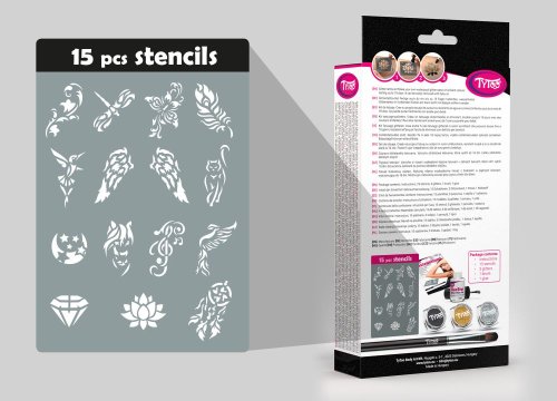 Populárne tetovacie vzory. Vzory: 15 ks. Farba: 3 ks. Vzor obvykle vydrží na koži 8 – 18 dní. Dĺžka tejto doby do veľkej miery závisí od typu kože a miery opatrnosti, s akou k tetovaniu pristupujete. Trblietavé tetovanie je odolné voči vode, dá sa však ľahko odstrániť alkoholom alebo detským olejčekom. Prajeme vám veľa zábavy! Vhodné od 3 rokov.