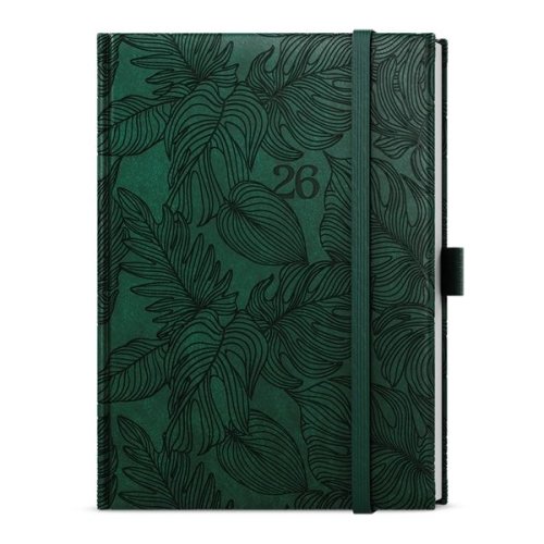 • Týždenný diár v obľúbenej vivelle so zelenou celoražbou motívu listov Tropik