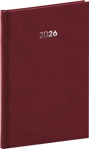 Plánovací týždenný diár Balakon 2026 v prevedení bordó, doplnený o strieborný letopočet. Povrch diára si získal obľubu vďaka kvalitnému vrchnému materiálu, ktorý je extrémne odolný voči vonkajšiemu poškodeniu. Týždenný rozvrh s česko-slovenským kalendáriom a doplnkovou angličtinou, nemčinou, maďarčinou a ruštinou.