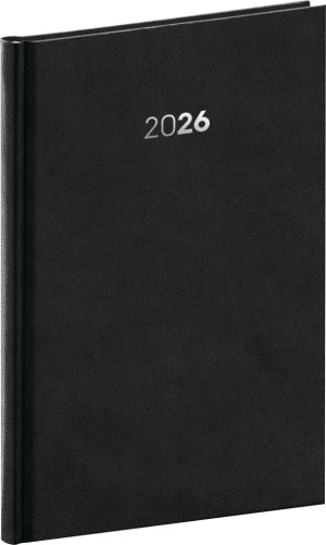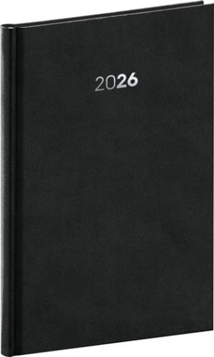 Plánovací týždenný diár Balakon 2026 v čiernom prevedení, doplnený o strieborný letopočet. Povrch diára si získal obľubu vďaka kvalitnému vrchnému materiálu, ktorý je extrémne odolný voči vonkajšiemu poškodeniu. Týždenný rozvrh s česko-slovenským kalendáriom a doplnkovou angličtinou, nemčinou, maďarčinou a ruštinou.