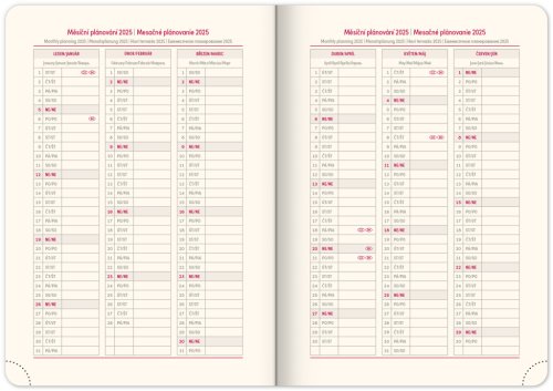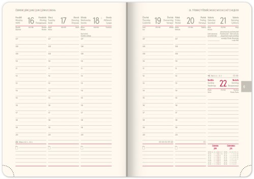 Týždenný diár Vivella Top 2025 v oranžovej farbe. Nová kolekcia stavila na osvedčené farby, ktoré dopĺňa nová razba letopočtu. Týždenný rozvrh s česko-slovenským kalendáriom a doplnkovou angličtinou, nemčinou, maďarčinou a ruštinou.