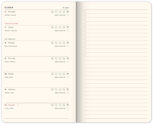 Láskavý diár vás prevedie rokom plným zjednodušovania – každý mesiac sa zameriava na jednu oblasť, v ktorej si môžeme život zľahčiť a toľko nezahlcovať zbytočnosťami. Prináša praktické tipy, inšpiráciu aj jemné stimuly na uvoľnenie a nájdenie radosti v bežných veciach, ktoré sú v skutočnosti oveľa významnejšie, než sa zdajú. Vypustením zbytočností, nielen tých materiálnych, vytvárame priestor na to, čo je pre nás naozaj dôležité. Diár má horizontálne rozloženie s českým kalendáriom a priestorom na poznámky. Súčasťou je aj praktický mesačný prehľad, ideálny na plánovanie dovoleniek či prázdnin.