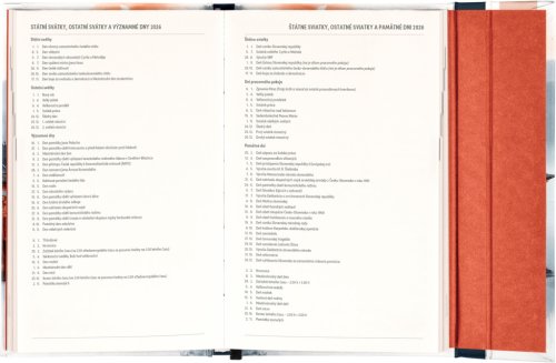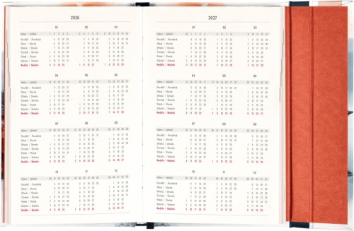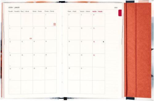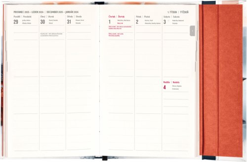 Týždenný diár s praktickým magnetickým uzatváraním je ideálnou voľbou pre tých, ktorí chcú mať svoje plány prehľadne pod kontrolou. Ponúka stĺpcové rozvrhnutie jednotlivých týždňov s dostatkom priestoru na každodenné poznámky. Súčasťou sú praktické mesačné prehľady, ideálne na plánovanie dovoleniek či prázdnin, a tiež zoznam českých a slovenských sviatkov a menín.