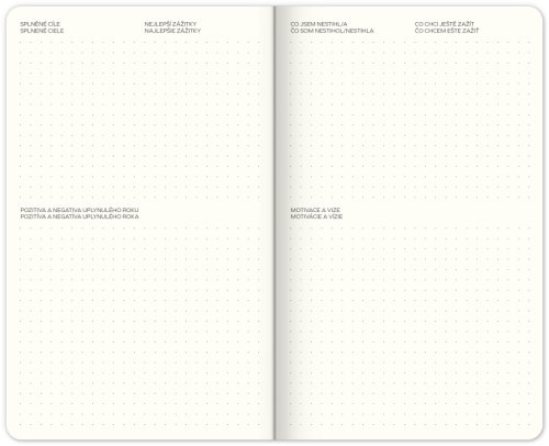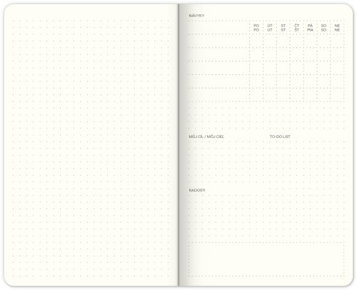 Chceli by ste si diár prispôsobiť svojim potrebám, ale neviete, ako začať? My Bullet Planner je tým pravým pre začiatočníkov v oblasti kreatívneho zapisovania. Nenútene vás prevedie pravidelným plánovaním, v ktorom budete sledovať svoje návyky, to-do listy a iné ciele, a zároveň vám poskytne veľa miesta na vytvorenie svojho systému. Nedatované týždenné kalendárium vám umožní začať kedykoľvek počas roka.