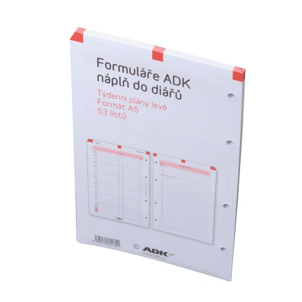 Každý týždeň na jeden list (1. strana prehľad celého týždňa, 2. strana - voľné riadky na poznámky)