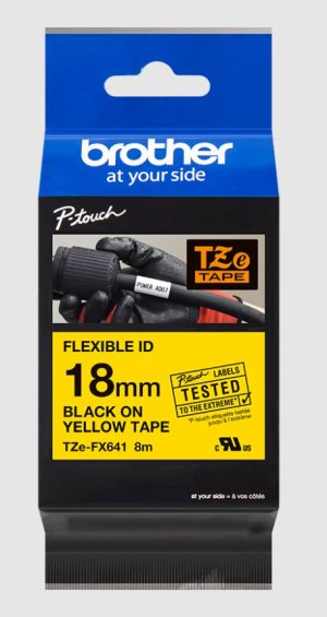 Ideálne na vytváranie identifikačných štítkov pre káble, vodiče, PVC rúrky alebo iné valcovité tvary. Špeciálne lepidlo pásky Brother TZe-FX641 s čiernou tlačou na žltom podklade zaisťuje, že vaše dôležité štítky budú mať dlhú životnosť. Kompatibilný s tlačiarňami štítkov P-touch, ktoré majú logo TZ alebo TZe na kryte kazety s páskou.