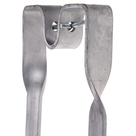 Hliníková kotva v tvare písmena U pre pevné uchytenie stredovej pásky tenisovej siete.